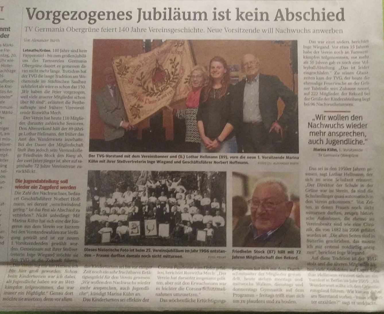 140 Jahre TV Germania Obergrüne 1881 e.V,